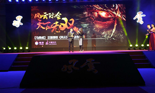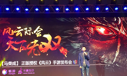 发布会现场,围绕《风云》的背景故事为主题,乐赢互动CEO黄海钰女士致词,介绍风云游戏的来由。和合作伙伴一起运行《风云》是荣幸的事情。合作伙伴黄炜先生一同上台也表示和乐赢互动合作是一件非常开心的事情。