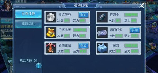 少侠可以点击界面右上角的活动按钮,打开活动日程界面进行领取。