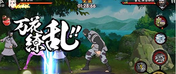 万花缭乱:自己跃向空中,并从空中激射出大量的花手里剑,对范围内的敌人进行连续性的攻击,最终在地面引起花的爆炸,将敌人大浮空。