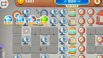 先看看这个炮塔组合,冰冻星+雪球+火箭+瓶子炮,这个组合虽然不如人意,但是也有他自己的特点。首先是有冰冻星炮塔,减速可以说是必备的,其次就是瓶子炮,有伤害加成辅助,但是在输出方面,无疑是薄弱环节,火箭与雪球的伤害是达不到刷高分的要求的。