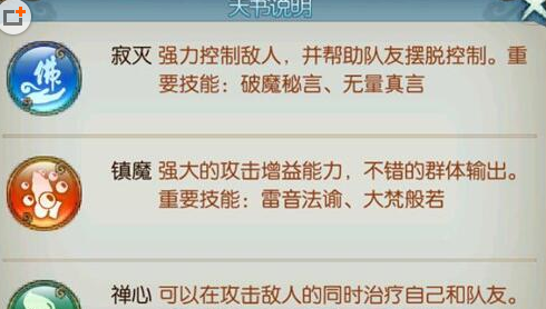前期技能四大职业根本玩不出职业特色,但是后期职业特色开始明显。因为天书就是强化职业特色的。你是天音,你想当控场,那么应该点寂灭。寂灭主加无量。