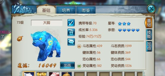 然后是宠物的选择,每只宠物的主修加点是固定的。但是辅助加点随机,所以要根据自己门派需要而选择,比如我是合欢,我就选择主斗志辅灵动的。其实加点可以自己选择,只是楼主很懒用系统极限分配,系统分配加点就是按照主和辅来的。