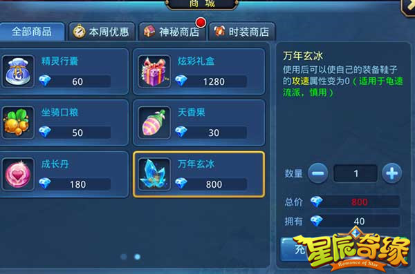万年玄冰可以在商城中购买,作用是让鞋子速度变成0,再加上装备负敏,分分钟变龟速。鞋子还可以打蓝宝石了,在这个炸蓝宝宝横行的年代,又省钱又实用。