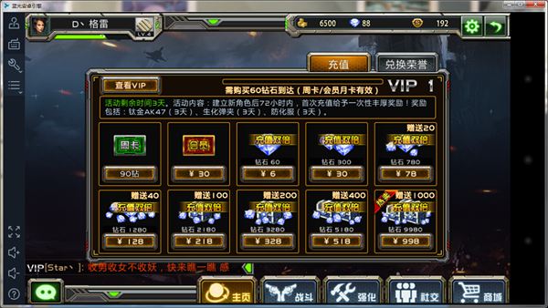 充值是玩友们获得钻石最快和最直接的方法,在游戏在主界面,玩友们就可以进入充值界面。