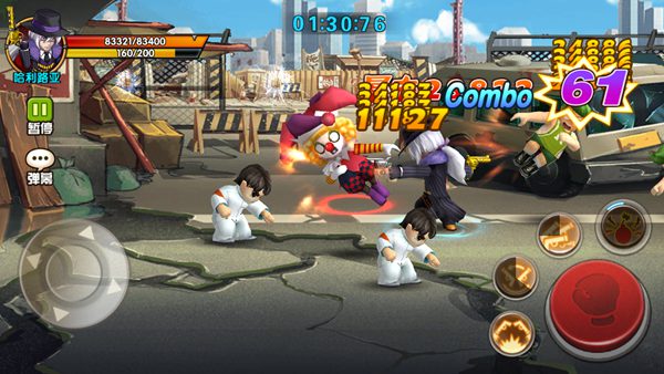 进入第3段的高架下,发现被10名小喽喽给包围了,有穿着白衣的小喽喽还有壮汉、篮球男等,这时千万不能往中间跑,很容易被前后包夹,往墙靠,沿着高架墙脱离他们的包夹,记得一定要迂回几个来回,将他们转的晕头转向,然后滑铲的突进技能加上爆发技能,乱射技能3连击,将他们打个半死,当然光靠3连击肯定不足以将10名小喽喽给击垮,用了技能当然要等蓝和技能CD的恢复,这时还是需要继续迂回几个来回,再来一次3连击,彻底击倒他们。