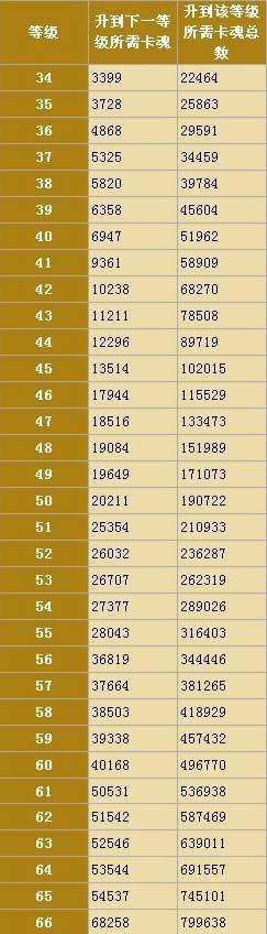 啪啪三国各武将34-66级升级所需卡魂