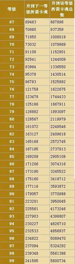 啪啪三国各武将67-99级升级所需卡魂
