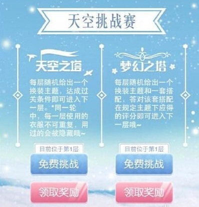 天空挑战赛分为两个玩法,天空之塔和梦幻之塔。
