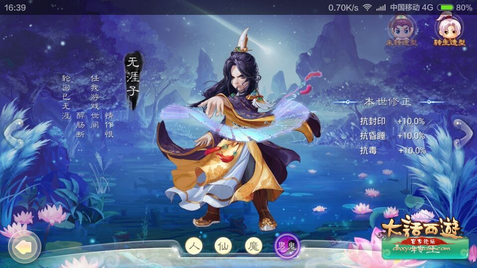 抗人法、三尸虫、遗忘无上限;其它抗性为75上限。