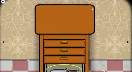 然后就是来到下图的场景中,选择左侧的矮柜,在抽屉中我们可以得到很多的道具。