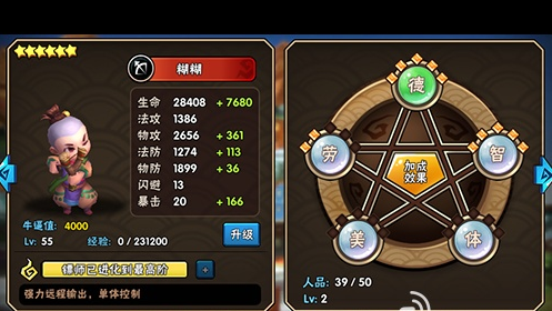 【德】、【智】、【体】、【美】、【劳】五种,提升这些素质之后,镖师基本属性可以得到不同程度的成长。五种素质分别对《龙门镖局》手游中镖师的生命、物攻、物防、法攻、法防、闪避、暴击七种属性中的一种或多种进行加成。