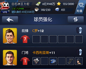 点击左下角的球员图标,进入球员强化。即可在球员强化右手边双箭头处点击排序。
