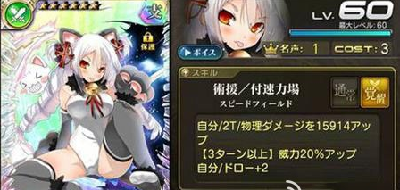觉醒:自己两回合物理攻击上升15914,【第三回合或以上扔出时,威力上升20%,下回合自己抽卡+2】