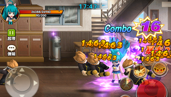好了有了最低配置要求,那么我们就来研究一下怎么通关副本吧,其实这个关卡里面不单单是小蕾比较麻烦,拿棒球棍的骚年也十分难缠,很容易被突进攻击打出硬直然后被连续攻击好几下,这样基本3星就泡汤了。所以最好的方式就是快速使用位移技能把小喽啰都聚集到版边,然后连招KO。