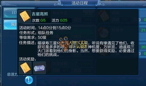 活动规则:组队前往 神机营、逍遥观、万妖宫 挑战地图上的福星 禄星