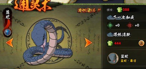 蓝蛇在被释放时,有一定几率会将地上的敌人击飞,使其再次浮空,让你有后续连招的余地。蓝蛇集自保、封位、追加伤害于一身,当没有替身时,被蓝蛇封角儿打浮空就是致命的(即使处入浮空状态或在空中,蓝蛇的毒气仍然有效)。分享一个小技巧,比如开场对面一个密卷砸到你脸上,你先交了替身,然后反击他,随后对手也交出分身,理所当然会反击你。这时候你可以迅速利用释放通灵兽时的无敌判定放出蓝蛇,使对手被浮空且无计可施,配合你的操作一套大半血是很简单的,直接夺取了场上的主动权。