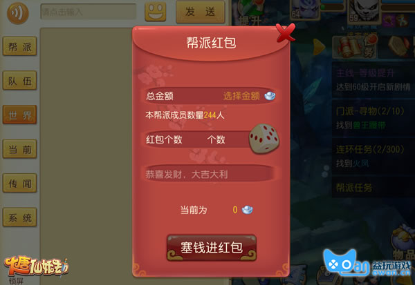 犹记当年的春晚,微信红包成功的吊起了大家的胃口,开创了一个开着手机抢红包、耳听春晚的新时代。如今《大唐仙妖劫》手游也增加了红包系统,玩家可以在帮派系统的表情界面中找到“红包”这个按钮,输入一定的银宝点击发放即可,玩家发放的红包会直接显示在帮派所有在线成员的游戏界面,需要玩家快速进行领取,当然红包的金额有限,眼疾手快的玩家才能够分享到这份好礼哦!