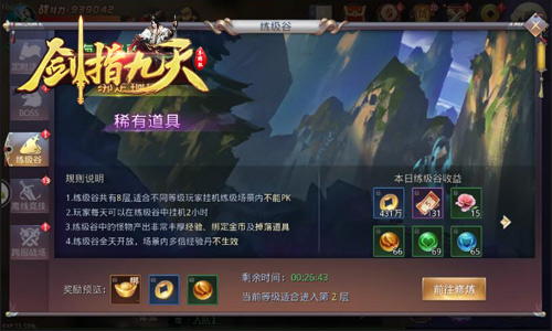 嘘寒问暖不如打比巨款,进阶修炼不如赶紧升级!在冰河《剑指九天》中,玩家若想驾驭各类高阶坐骑、麒麟臂,别忘记每天参与限时两小时的练级谷玩法。练级谷中,玩家可挑战与自己等级最接近的怪物,快速积攒海量经验,轻松冲刺百级大关。此外,玩家还可斩获铜钱、绑定元宝卡、鲜花及各类一阶属性丹等道具哦!