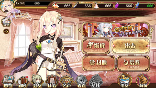 此次的新版本添加了一个全新的场景,将之前冰冷的“封地”具体场景化了,召集、炼金、分别,空艇等之前虚化为一个按钮的各个模块,都变成神姬封地上的各个标志性建筑,加上空阔的远景和调色配置,整个画面显得秩序严明而又空阔明朗。