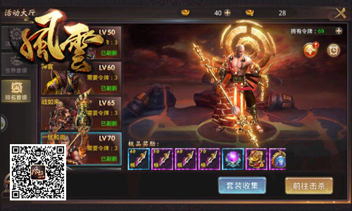 高玩抢BOSS,菜鸟捡垃圾,难道普通玩家就不能与游戏内的BOSS来一场1v1的单挑吗?在冰河《风云志》中,排名首领玩法让普通玩家也可拥有自己的专属BOSS,不必跟在高玩身后“捡垃圾”!排名首领刷新极快,玩家只需消耗挑战令牌即可进行挑战,轻松赚取各等级装备模具与进阶丹、绑定元宝、装备碎片等道具奖励!