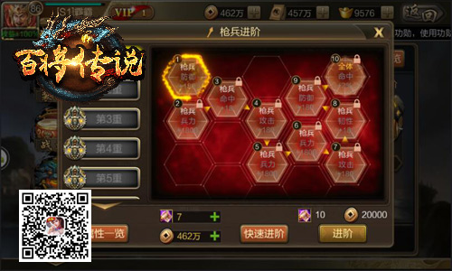 传奇挑战,名不虚传!玩家在冰河《百将传说》中获取的进阶秘籍是游戏中最难获取的道具之一,玩家可将进阶秘籍用于兵种玩法,激活10重特殊兵种属性。据高玩透露,兵种玩法不仅可为对应的兵种提供防御、兵力等多种特殊属性,更可大幅增加玩家战力!偷偷告诉各位:优先升级枪兵与骑兵,可大幅增加队伍的抗打能力;而升级弓兵与战车,则可大幅提升整体输出水平哦!