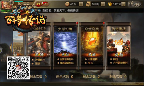 为了满足各位玩家对于武将专精、兵种强化两大玩法的需求,冰河《百将传说》还开放了“夺宝奇兵”、“传奇挑战”两大全新副本供玩家选择!夺宝奇兵玩法中,玩家派出实力最强悍的武将进行挑战即可赚取海量元宝与铜钱奖励;而传奇挑战玩法中,玩家则需一次对不同强度的敌军发起挑战,为自己的武将赚取进阶秘籍!