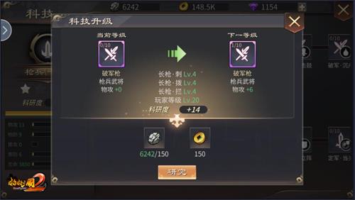 除粮草供应外,主公的封地内还可以建造军工坊,在这里可以为自己的士兵升级。《啪啪三国2》内的兵种分为枪兵、骑兵和弓兵。兵种相克的原则是:骑兵克弓箭兵,弓箭兵克枪兵,枪兵克骑兵。军工坊内有分别对应三个兵种升级界面。游戏中蜀军多为枪兵武将,魏国多是骑兵武将,东吴多是弓兵,玩家可以有针对性的提升自身战斗力。
