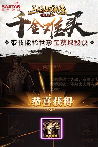 珍宝阁、玲珑阁乃是《三国群英传-霸王之业》两大寻宝之地,品质高阶的珍宝几乎出自于此,最让主公欣喜的是,莫过于高级珍宝还带上难得的技能,那更是万中挑一价值不菲。但,并不是每个寻出的宝物,都能带上技能,令主公满意,这个时候,难道主公们要花费时间继续苦苦等待吗?小编这有个独门秘诀与各位主公们分享,主公们且听我娓娓道来。