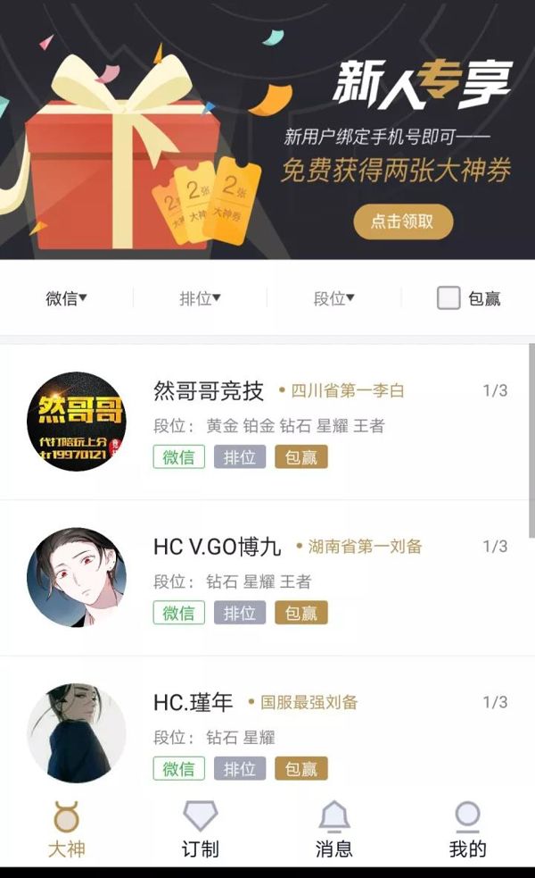 新用户绑定手机号还免费赠送两张大神劵哦!