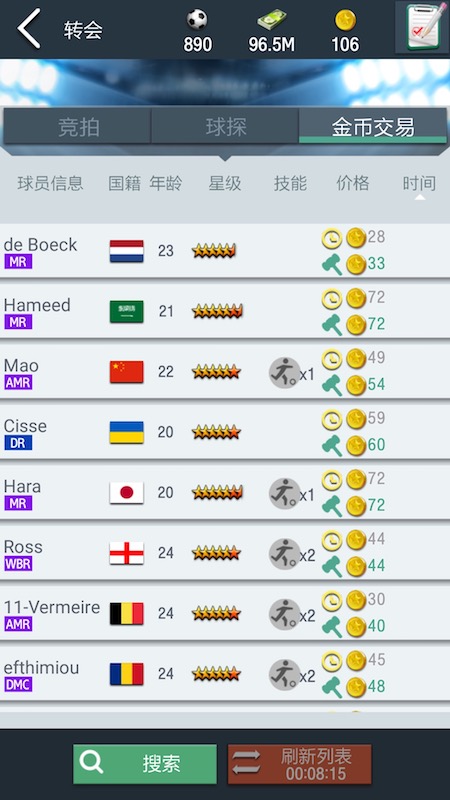 其中,参与游戏中最激烈的顶级赛事之一:豪门争霸就是一个好方法。玩家只要培养好球队,锻炼好操作,在豪门争霸中获得积分越高,每周结算的时候就可以得到越多的金币奖励。而且当你的球队到达传奇段位的第一名时,更能得到50金币的重赏,非常的诱人!此外,你也可以在游戏中多留意金币交易市场,当发现低价的潜力球员时,就大胆的买下;等到你把潜力球员培养成巨星后,再用更高的价格卖出去,就可以赚取其中的差价了。在这里和大家透露一下,高阶的球员价值一般都在30金币以上,一些年龄低技术好属性高的好苗子更能卖出意想不到的高价,可以说是勤劳致富的最强手段!