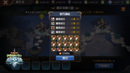 每日进入通天塔指挥官能够携带士兵的数量为兵营上限的最高数量,可上阵的士兵为每种士兵100名,英雄数量则没有限制,直到所有英雄全部阵亡。