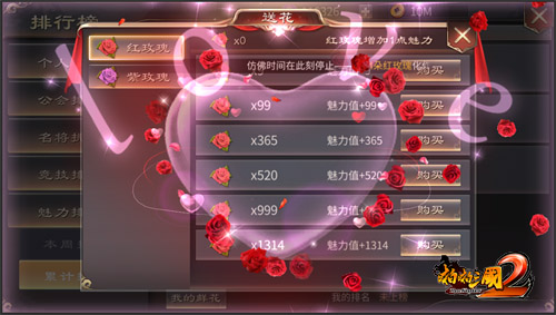 除此之外,这次新版本更新还增加了“送花系统”,主公之间可以互赠鲜花,鲜花可以增加主公个人魅力值,提升魅力排行,玩家收到的鲜花越多,每周排名就会越高。值得一提的是,当有人单次赠送鲜花数量超过99朵时,还将会全服滚动播放哦,扬名九州就在此刻!