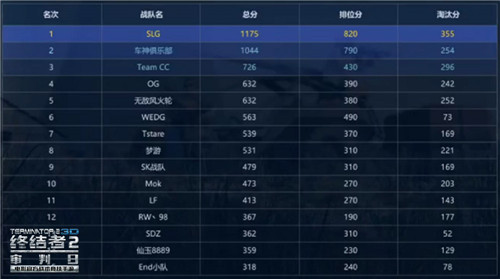 激战精彩纷呈现,决赛阵容尘埃落定此次进入决赛的15支战队分别是SLG、车神俱乐部、TEAM CC、OG、无敌风火轮、WEDG、tstare、梦游、SK战队、MOK、LF、RW、98、SDZ、仙玉8889和END小队。其中SLG、TEAM CC、OG与LF是知名电竞战队,其他队伍则是此次联赛中崭露头角的玩家战队。半决赛后SLG战队以1175分暂居榜首,成为本次联赛的热门夺冠人选。
