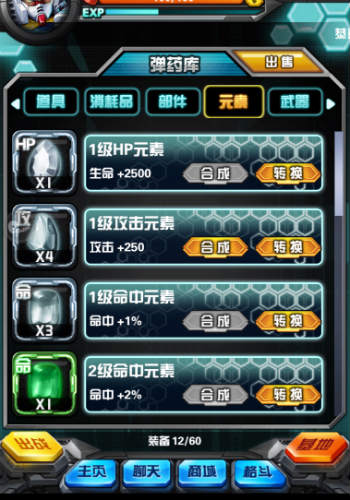 道具商城,作战军火库。战斗,自然就少不了强力的武器。在6637手游《高达无双》的太空商城当中,有着专门的区域出售各种道具,包括装备、机体部件以及元素等等,专为机师们的战斗而设。武器、装甲、启动器等装备可以让机师们的高达机体从头武装到脚,机体部件则可以对机体进行升级改造,而攻击、防御、暴击等各色各样的元素,则可以让高达机体的武器具备更加强大的杀伤力。