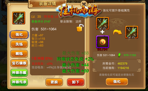 在挑战关卡过程中是否在为选择伤害属性还是吸血属性而烦恼?在PVP过程中是否仍因用生命神器还是韧性神器在纠结?在准备秒杀别人的时候是否该舍弃暴击还是爆伤而神伤?现在这一切都不再是问题!《挂机西游》全新的双神器系统将会使你神器装备拥有更完美的双重属性,强强结合,1+1的威力绝对超乎想象,不用再考虑“to be or not to be”的各种选择,全方位治愈选择困难症,就算处女座、强迫症也不再感到遗憾,打造一套刷本、竞技、收割三位一体的神装不是梦。
