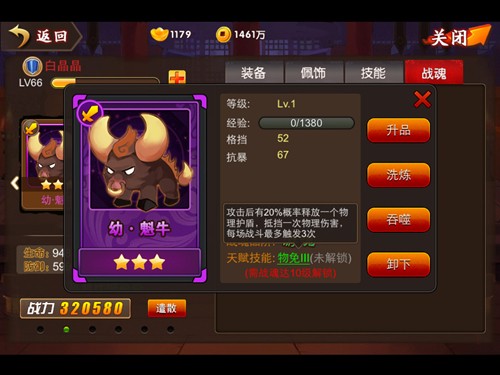 《囧西游》的远古战魂卡也可装备在伙伴上,每个伙伴最多可佩戴两张战魂卡。每张战魂卡都有经验、等级、属性、品阶和天赋技能。玩家也通过升品、洗练、吞噬等方式来不断提升战魂卡的能力值。建议佩戴更多属性加成的战魂卡,星阶高未必就是有用,很多高星阶的战魂卡并没有天赋技能。所以在选择属性加成多的同时,更需要看是否有天赋技能。