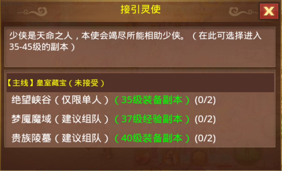 梦魇魔域在早期绝对是新人的福地,37级以后的新手玩家都可以进入副本刷经验,副本的难度并不高,拉怪的时候分开拉,一波波消灭就好。副本分为两层,消灭第一层的怪后,通过传送阵可以到达下一层,第二层的怪物也慢慢的拉,不在怪物中扎堆的话过本没有太大的难度,最终BOSS也很简单,硬抗注意加血就能过。值得注意的是,进入副本后必须点击“赤月图腾”才能获得经验加成效果,同时如果在副本内使用经验符的话可以获得额外的加成。