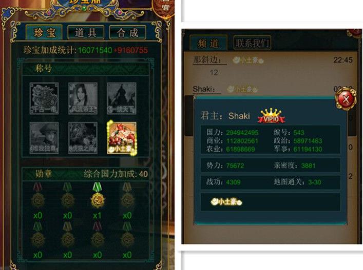新增称号系统,千古一帝、风流帝王、狼虎之师,小土豪等酷炫称号荣耀登场!酷炫称号,由你打造,圣上还等什么,赶紧夺一个自己喜欢的封号吧。