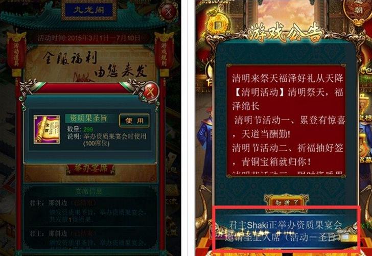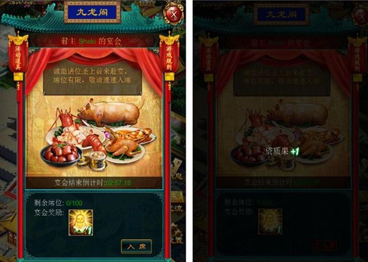 新增圣旨活动,土豪圣上举办奢华宴席,丰厚壕礼全服赠送~参加盛宴席领圣旨,白吃又白拿,珍贵道具轻松获得。