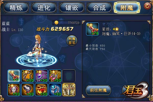 在坎德兰大陆上,战力强,才是王道!本次《君王3》公测版本会首先开放3套附魔套装,在超难度的王者副本中随机掉落,想要打造你的神兵利器战力UP打怪瞬秒,就赶紧去王者副本刷吧!但是拼人品的系统,对于处女座玩家来说注定是收集不齐就折磨到死~~