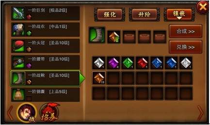 在《三国名将》中玩家可以通过镶嵌不同类型的宝石来提升装备的属性,每种宝石都有独一无二的颜色标识,不同等级的宝石形态各不相同。在通关下邳战场8后,宝石系统即会开启,玩家可以通过使用玉币或者元宝进行兑换。