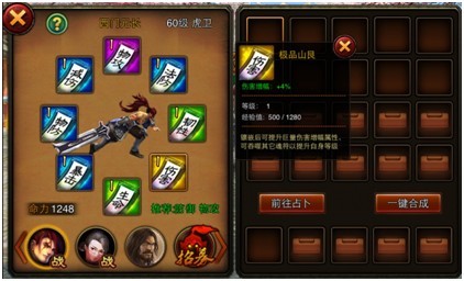 合理使用魂符可以给武将提供大量的属性加成,提高队伍的整体战力,魂符孔按照人物等级开放,等到一定等级时就可以获得需要的魂符孔。属性魂符可以通过吞噬其他属性魂符,或者经验魂符来获得经验并提升等级,被吞噬的魂符会消失。