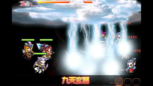 《萌仙传》中“九天玄雷”为仙灵“精卫”的必杀技,此招一出,战场上马上风起云涌,闪电密布,对敌人进行全屏无差别打击。技能特效炫酷场面震撼,每道闪电都会造成极大的伤害,立刻就能驱逐所有对手。外表可爱、俏丽无比的萌妹,想不到也暗藏如此惊人的力量,实在不容小视。