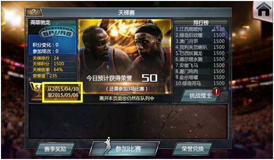 除了全新的图鉴系统和全明星周末玩法之外,《NBA梦之队》在赛程安排上,也可能出现变革。以“天梯赛”为例,尽管赛事界面并未添加新元素,但小编还是发现,此前长达14天的赛程已被缩短至7天。这一变革无疑将提高天梯赛的对抗频率,使赛事节奏更加刺激、玩家竞争更为激烈,至于天梯赛奖励内容是否会出现增减,还需玩家亲自体验方能知晓。