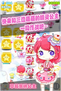 传说在天空之城的神秘岛屿里住着三位喜欢吃甜点和糖果的公主,有一天,糖果们被邪恶的灵魂附身了,于是三位勇敢的糖果公主带领着她们的宠物精灵,和无数邪恶糖果开始了战斗。
