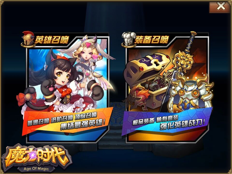 召唤法阵开启装备十连抽,混沌套装、苍炎套装不再是梦。十连抽大几率开出紫色装备整件或碎片,紫色装备搭配强力英雄,助你战力突飞猛涨!