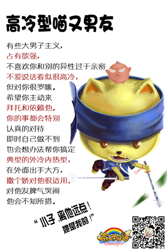 喵又部落中的傲娇小萌萌,外冷内热,典型的摩羯座,选择他的妹子也许会缺少些浪漫,但是却能得到满满的关怀与无微不至贴心照顾