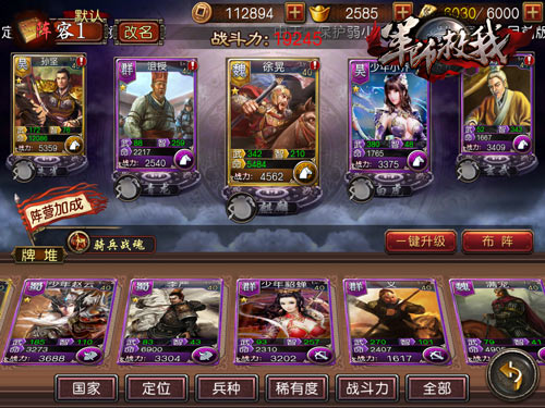 当主公等级达到22级时,会解锁五个上阵英雄的卡位,上阵有某种共同特征的武将会有相应的加成,可以提升整支队伍的整体战斗力。如果组成同一国家的阵容,就可以获得一定的阵容加成。再配合各个兵种间的搭配,可以提升战斗力,让战斗更简单。