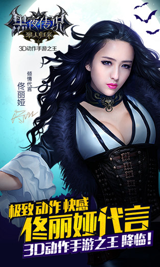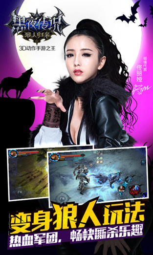 人气明星“佟丽娅”倾情代言推荐,3D动作手游之王《黑夜传说之狼人归来》重新定义动作手游!全息三维立体画面、多段连招,无限连斩,极致打斗、击飞浮空、变身狼人、大型军团战等玩点着称,堪称2015年最刺激最爽快极致动作手游,开启动作手游革新时代。
