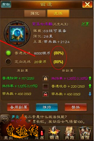 关于装备洗练,则是3k玩《曹操传》专门为活动而开设的新功能,洗练过程中所产生的一系列费用(无论银币或金币)都能得到限时打折优惠(8折),务求让玩家锻造洗练神装,获得更为强大,更为适用的副属性,更加方便与轻松打造!至于具体活动将于何时开启,还请继续关注下文!
